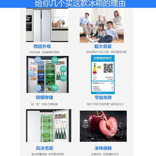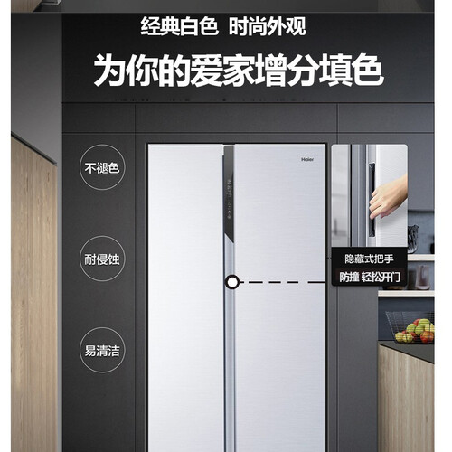 采用隐藏式把手设计,能有效避免碰撞,开门更轻松。采用环抱式立体出风设计,风不会直吹食物,不用担心食物结霜。
