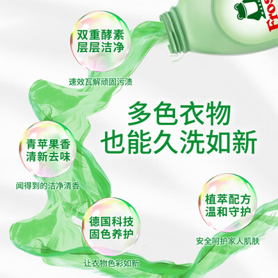 德国原装进口洗衣液,双层酵素层层清洁污渍,容易漂洗。还能有效预防衣物串色,反复清洗依旧色彩如新。