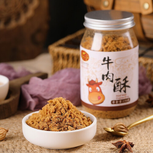 肉松可以闻到浓郁的肉香味,入口很有嚼劲,香爽没有油腻的感觉。不用冻猪肉,只选用新鲜品质上好的猪肉,营养价值更高。