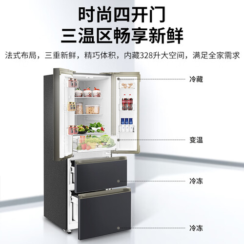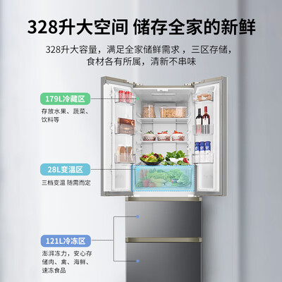 冰箱空间布局合理,容量大,能满足全家使用需求。三区存储,食材不易串味,营养不流失。