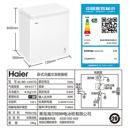 海尔 节能单温冷柜