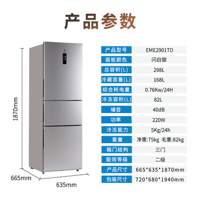 伊莱克斯 三门风冷无霜冰箱
