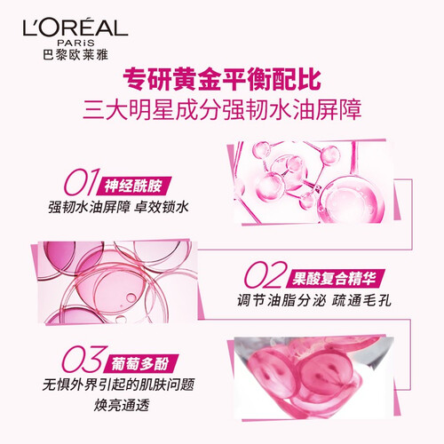 蕴含神经酰胺提取物,能够强化肌肤天然屏障,滋润养肤不刺激。果酸复合精华,去除面部多余油脂,疏通毛孔皮肤畅快呼吸。