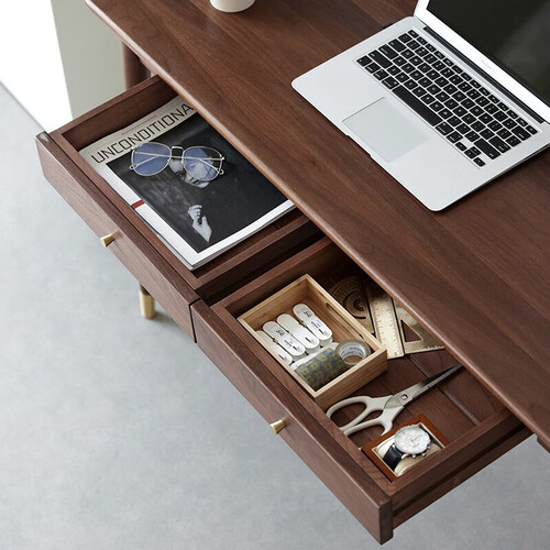 黄铜元素装饰设计,点缀书桌,告别单调,时尚华丽。选用木蜡油涂装,绿色环保,健康清新,安全无害。
