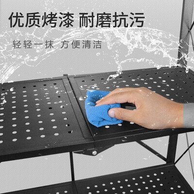 顶层旋转固定锁扣,牢固锁紧,安全稳固。侧边防滑网格设计,保护物品不掉落,优质烤漆,耐磨抗污,可以折叠收纳。