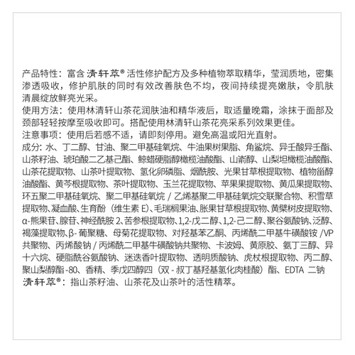 蕴含丰富紧致亮肤成分的面霜,为肌肤提供弹润柔滑滋养;同时又能够帮助匀净肤色,让你的肌肤看起来更加柔滑亮白。