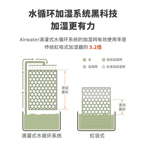 采用便捷上加水设计,不必弯腰或者蹲下使用,老人操作时也轻松。拥有360度圆形进风口,感受大风量来袭,为强劲加湿助力。