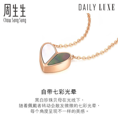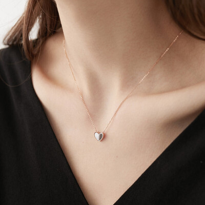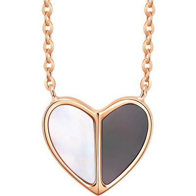 双色母贝心形项链,黑白配色组成的爱心,很有设计感,赋予美好爱情的寓意。珍珠母贝在阳光下会散发出七彩光晕,别致浪漫。
