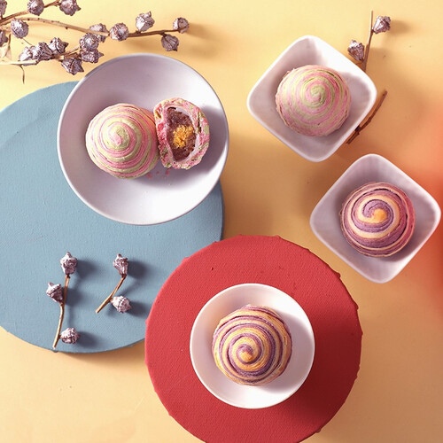 彩虹蛋黄酥,视觉冲击给人带来彩虹般的好心情,更加赏心悦目。手艺新作,层层材料搭配,口味依然香甜酥口。