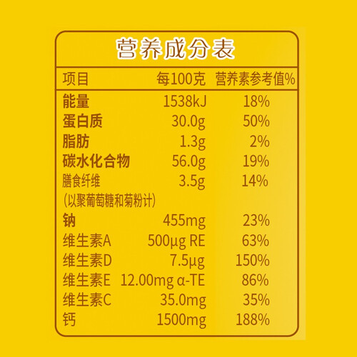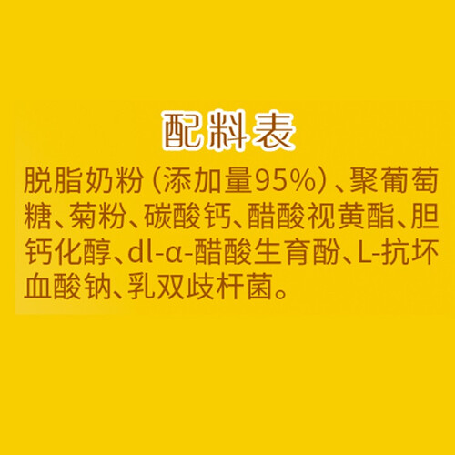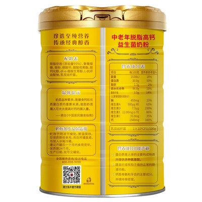 经过脱脂工艺处理的奶粉,很适合中老年人饮用,脂肪含量低;添加乳双岐杆菌成分,帮助调节肠胃,避免上火问题。