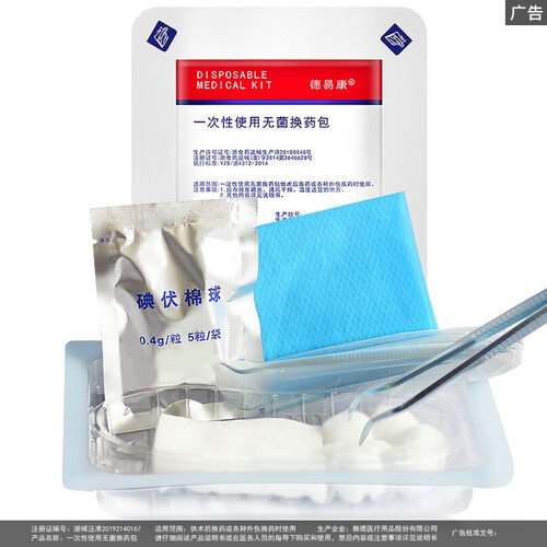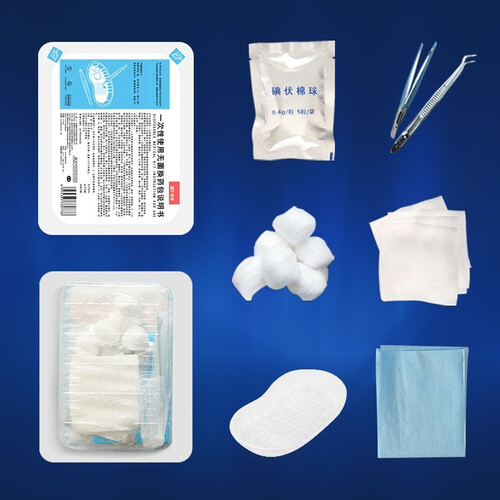 含纱布、棉球、镊子等多个护理产品,用具配备齐全,满足各类伤口换药需求。采用纸塑包装,干净卫生易携带。