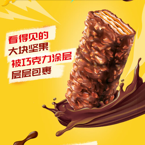 特别加入阿根廷进口花生、土耳其进口榛子,令脆脆鲨的口感更加丰富。看得见的坚果被巧克力涂层包围,一口酥脆巨美味。