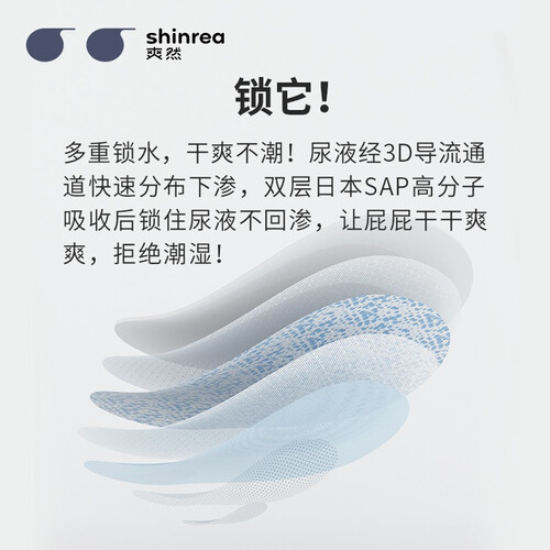 拥有弱酸性亲肤表层,有效减少碱性尿便的刺激,让宝宝远离红屁屁的烦恼。加宽芯体设计,增加尿液吸收面积,不易返渗。