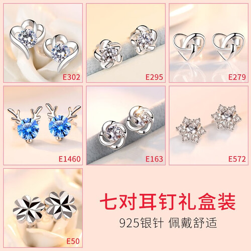 内含七对耳钉,每天带来不一样的精彩,造型感十足。闪耀锆石镶嵌,媲美钻石,凸显轻奢格调。