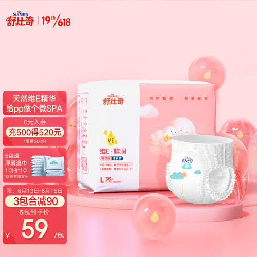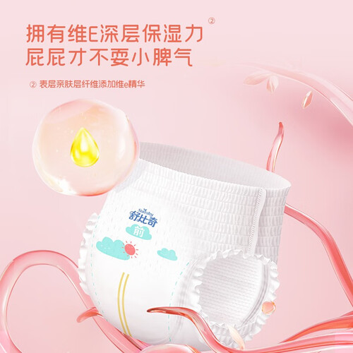 添加植物维E精华,浸润包裹每根纤维,深层润泽持久保湿。搭配0.2cm轻薄芯,加速排湿透气,呵护宝宝天生敏感小屁屁。