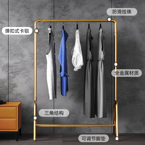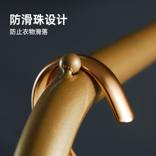 底座采用三角设计,稳固承重更安全,避免发生倾倒的情况,同时在挂衣物的边缘带有防滑挂珠,小巧精致更加美观。