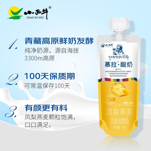 将凤梨燕麦加入牛奶中去,体验独特的味道。青藏高原鲜奶源发酵,营养丰富。包装新颖,时尚美观。