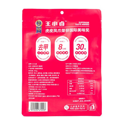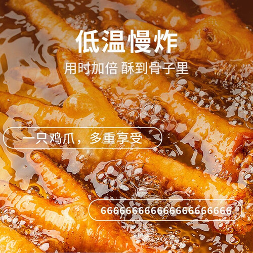 选用山东散养鸡的大凤爪,每个凤爪大个匀称,都在40g左右,经过先炸后卤的工艺制作,产出卤香十足的虎皮鸡爪。