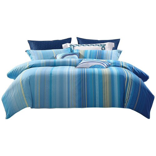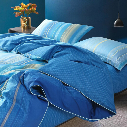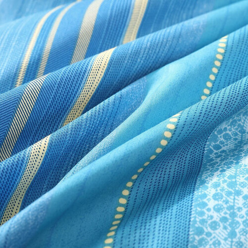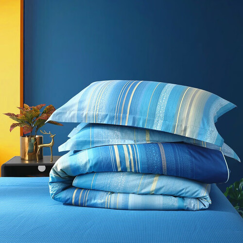 融入极简的条形图案,并穿插不同的颜色,整体的色调十分和谐,让人仿佛置身于海洋,创造良好的睡眠氛围。