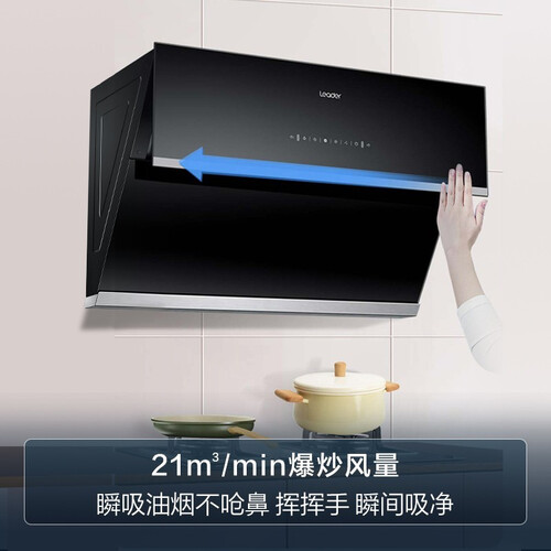 70摄氏度高温熔垢,持续高温加热溶解油渍,通过风轮甩到集油盒内。420Pa强力风压,在做饭高峰期突破风阻顺畅排烟。