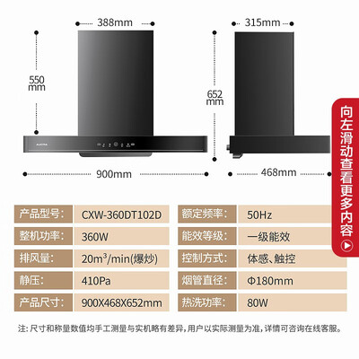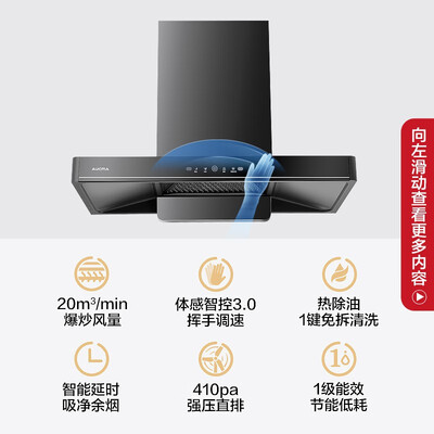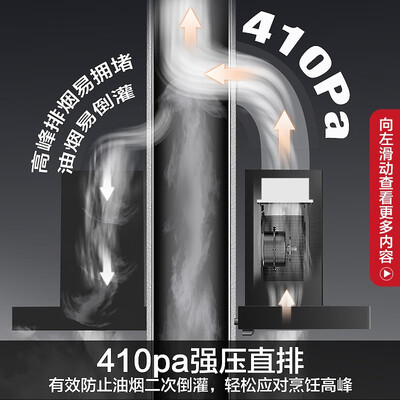 拥有智能延时功能,能够在烹饪完成之后继续吸出残余油烟,营造洁净环境。搭载410Pa压力,能够保障油烟通畅排出。