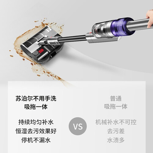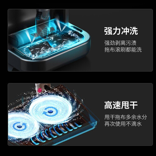 吸拖一体设计,大大提升清洁力,采用机洗拖布,从此解放双手。可以180度躺平放置,便于清洁低矮家具底部。