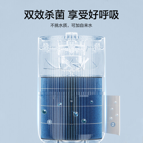 无雾加湿,使蒸发的空气中不含杂质,呵护敏感肌人群,享受畅快呼吸。可直接使用自来水,双效抑菌,释放纯净空气。