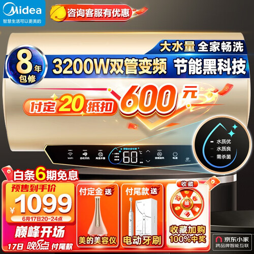 具有智能控菌功能,杀灭水中有害菌,减少皮肤刺激,用的更安心。搭配3200W涡旋速热,加热速度更快,让你享受畅快沐浴时光。
