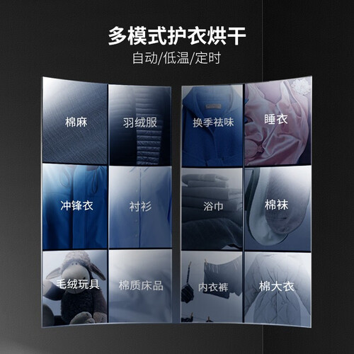 外形采用柜式全框设计,易于打理,操作方便。采用多层纵置加热系统,有效增加加热面积,使得去屑更彻底,衣物更加蓬松。