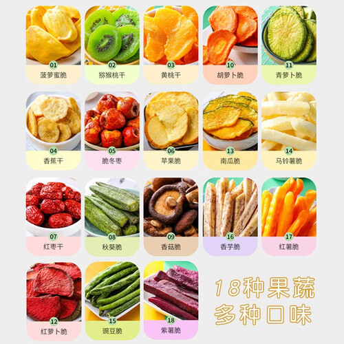 多种果蔬均衡配比,易吸收不给肠道添负担,居家追剧零食好伴侣。散发着浓郁的蔬菜气息,越嚼越香。低温脱水,锁住营养美味。