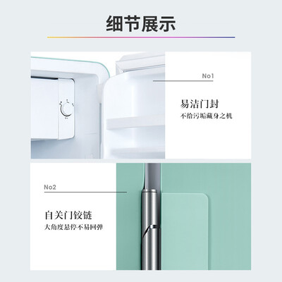 搁架可调节,放置更方便灵活,内部分区合理,存取更便捷,自锁箱门设计,冷气不泄漏,使用更安心。