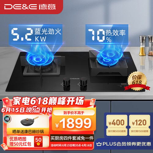 拥有智能定时功能,烹煮食物无需在旁看管,到时自动关闭,令生活更从容。5.2KW炽热猛火,迅速加热锅底,食材更快熟透。