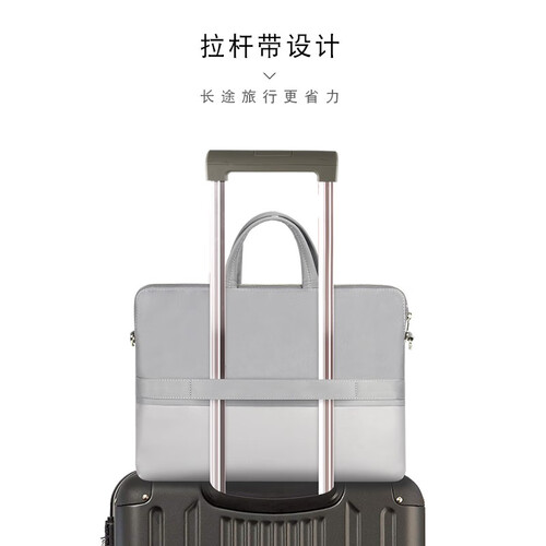 气囊隔层设计,细致实用,有效防震防摔保护电脑安全。拉杆袋设计,样式简单别致,外出使用方便,省心省力。