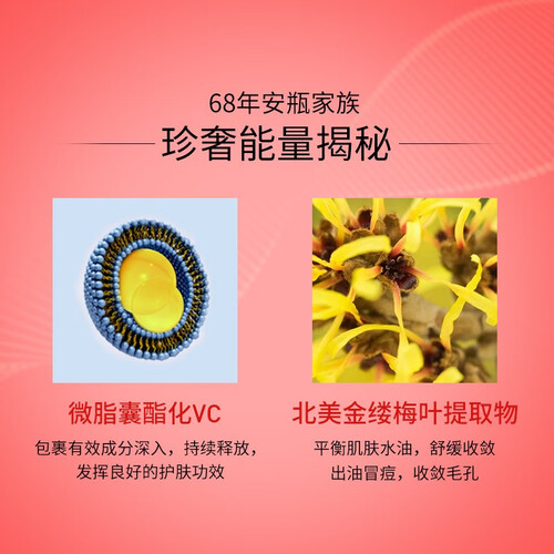 采用微脂囊包裹技术将鲜活VC深入肌底,淡化痘印提亮肤色,金缕梅舒缓控油加持,抵御痘痘的肆意侵害。3%蛋白多糖重塑弹润。