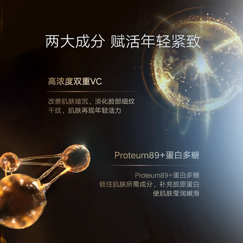 蕴含高浓度双重VC和蛋白多糖成分,激发胶原蛋白和弹力胶原再生,淡化脸部干纹、细纹,有效改善各种肌肤问题。