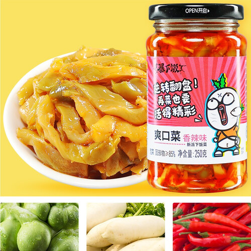 无菌密封罐装设计,可远离外界污染,隔绝灰尘进入,延长存放时间。微辣川式口感,不会过于刺激,老人小孩都能吃。