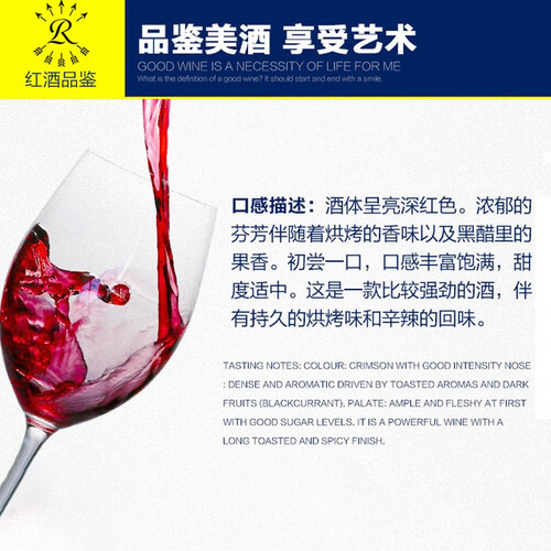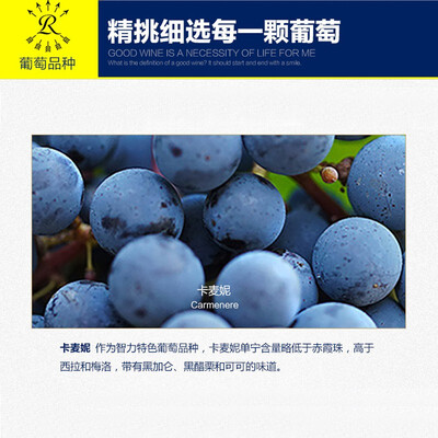 精选智利本地的进口葡萄,口感丰富,拥有多种层次的味道。葡萄酒口感饱满,拥有持久悠长的回味。