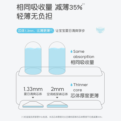 采用双层防漏设计,更好锁定尿液,更适合学步宝宝穿戴。具有三重打孔,能够更好的吸湿排热,让小屁屁体验持久清凉舒爽感。