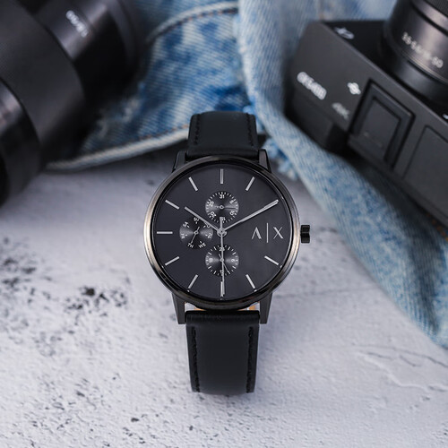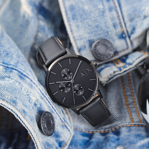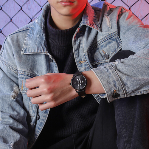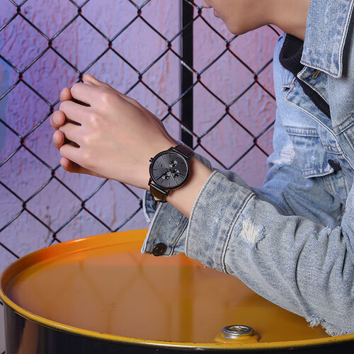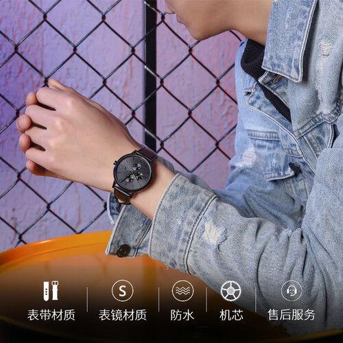 经典的三眼表盘,复古又不失时髦感,用多久都不用担心会过时。印有品牌logo的表冠,时尚吸睛,彰显男士商务气质。