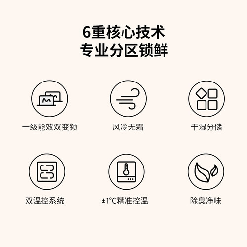 双温控系统,360°独立制冷循环设计,冷气均匀包裹食材不凝结,无需除霜。大容量分储,合理分区存储,干湿分离不易串味。
