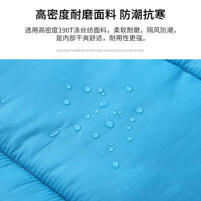 睡袋的外层是春亚纺的面料,十分亲肤,带来保暖的舒适体验。可以全部展开来,当被子或是垫子来用,实用性强。