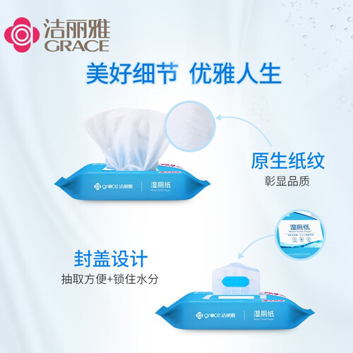 纸张中蕴含原生木浆,温和可降解,用后能直接丢入马桶。ED纯水配方,轻松擦除污垢,清爽洁净又舒适。