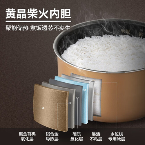 五层内胆,独立按键。全新升级的五层内胆,不会出现粘锅状况,方便日常清洁,轻轻一冲就能快速洁净。采用独立按键设计,老年人也能使用。