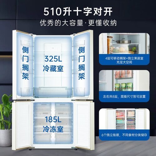 银离子抗菌系统,对于金黄色葡萄球菌、大肠埃希氏菌有抑制作用,抗菌率达99%。510升容量,实现四门精储,分区收纳更有序。
