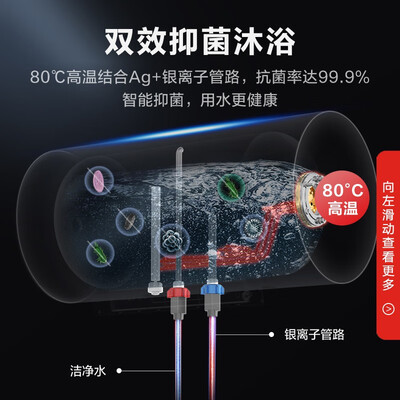 特设一级能效,不止省电而且加热更快,热水器全天开启也划算。搭载美的防电墙技术,拒绝漏电隐患,让您洗澡不再担惊受怕。
