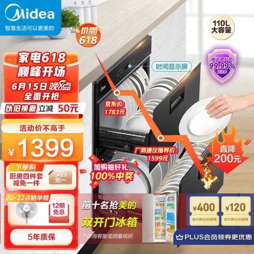 二星级强力消毒标准,实力消烘全面净护,高效杀菌消毒保持餐具干爽洁净,守护全家用餐健康。110L大容量,不再收纳而烦恼。