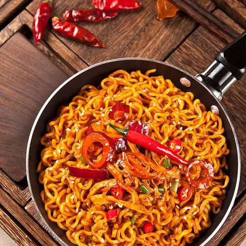 气蒸面饼,非油炸处理,面饼脂肪含量小于1%,代餐低脂。精选辣椒酱等原料制作料包,辣的过瘾,原料香味十足。