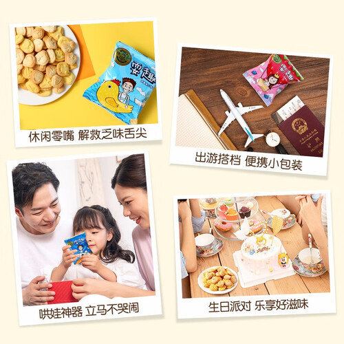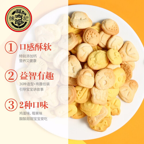 阳光小麦粉、新鲜鸡蛋混合鲜醇牛奶,打造健康品质饼干零食。萌趣卡通造型赋予饼干颜值,给视觉和味觉双重享受。