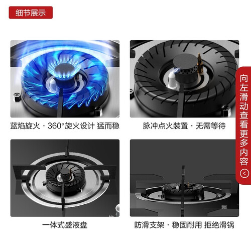 4.2kw大火力设计,定格美味营养。一按即开持续防电,点火操作更简单。多段火力调节,掌控美食核心。