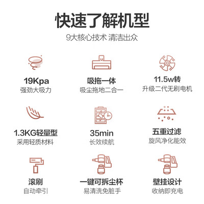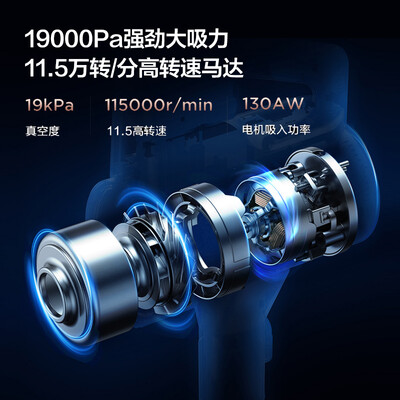 1.3KG轻量化设计,重量降低21%减少双手负担,高处尘埃轻松搞定。19Kpa强劲大吸力,稳定输出,快速拔出地缝灰尘。